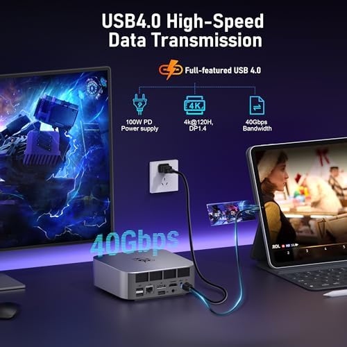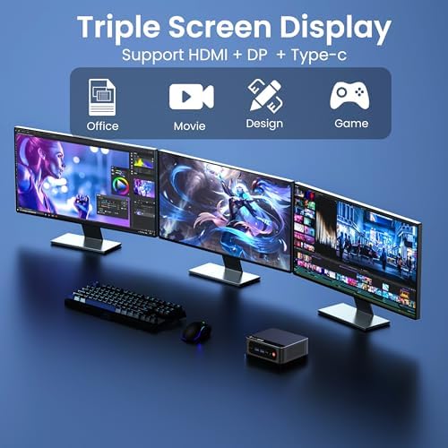 This Mini PC is designed for versatility, featuring a 2.5G LAN port for speeds up to 2500Mbps, and multiple USB 3.2 Gen2 ports, including a USB Type-C, allowing for high-speed data transfer rates of up to 10Gbps. Whether transferring large files from external drives or connecting multiple displays, this mini computer meets all your needs, making it perfect for designers, remote workers, or home entertainment use.